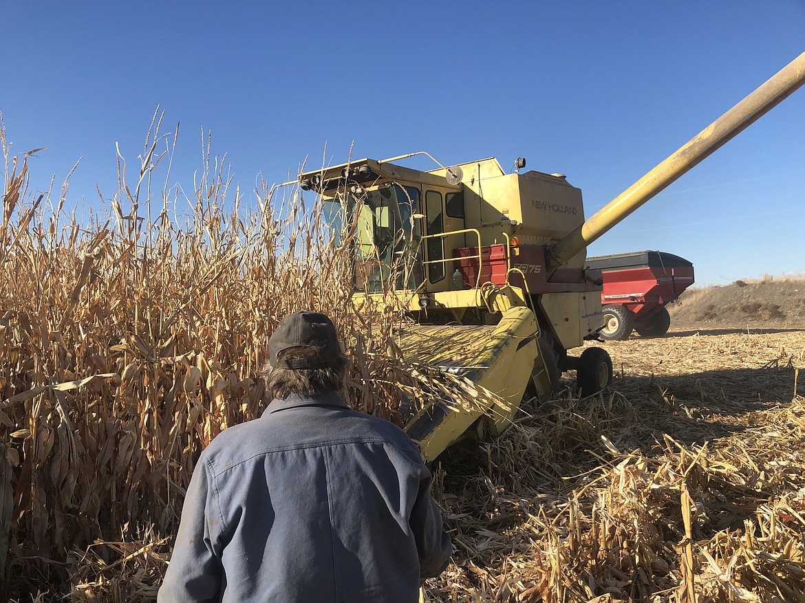 Hendrickson was standing amid the stubble of about 130 acres of that corn on the northwest corner of Stratford Road and Road 16. Most of it has been harvested, and if things went as planned, Hendrickson said he and his sons Quinton and Preston would be finished by the end of Wednesday, Nov. 11, just before cold, rainy weather was expected to hit the Columbia Basin.