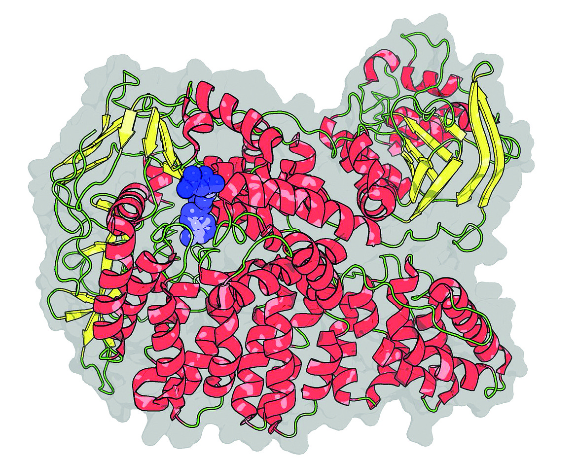 College of Agricultural and Life Sciences and the College of Science have teamed up to pioneer the use of computer modeling to develop new classes of fungicides for use in potato production. This is an image of the YEF-3 protein that the fungicide targets.courtesy GRAPHIC/university of idaho photo services